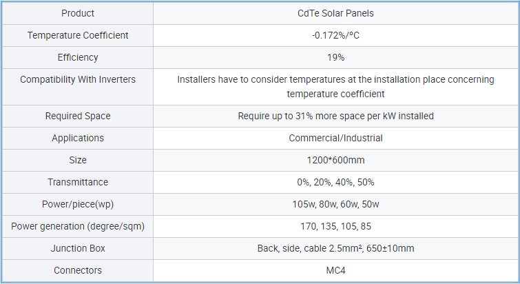 El marco de aluminio y el vidrio templado, conocido como capa de óxido conductor transparente (tco), están hechos depositando sno2: F o materiales similares. La capa TCO es el lugar donde se deposita el absorbedor cdte, lo que permite que las células solares estén completamente protegidas.