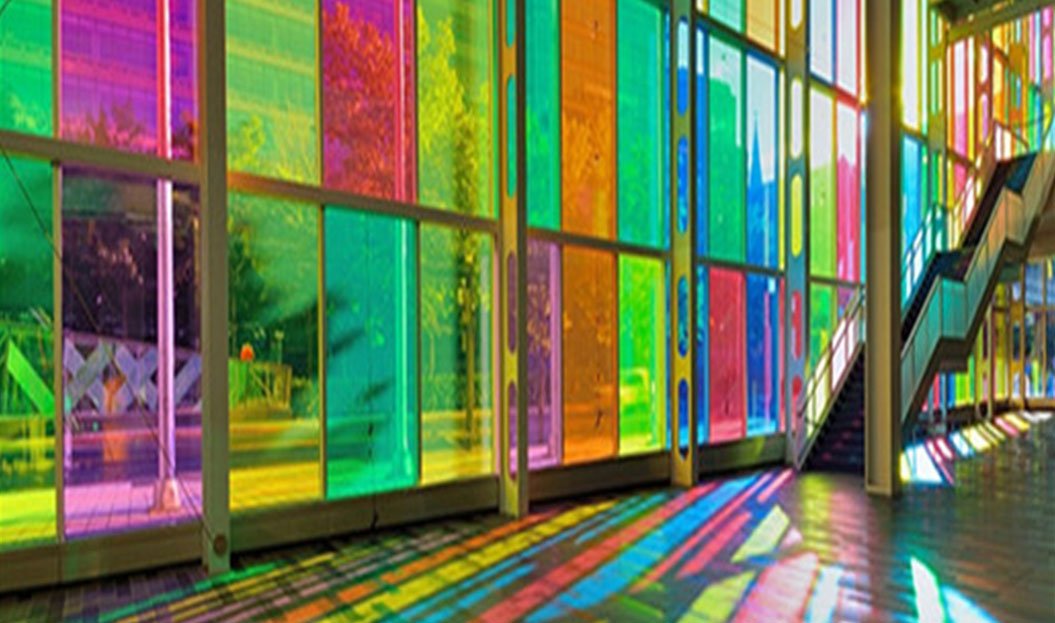 Cuando el vidrio laminado de color se rompe, los fragmentos de vidrio se adhieren firmemente a la capa de película intermedia y permanecen intactos, adecuados para diversos fines decorativos.