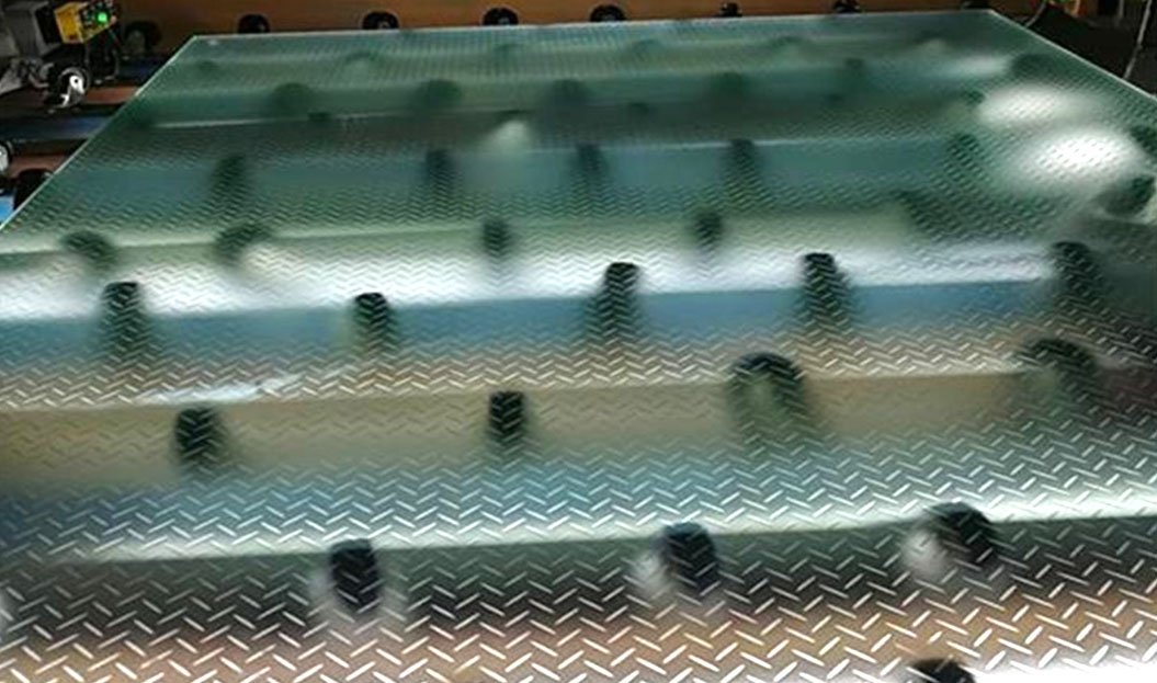 Cuando el vidrio laminado se rompe, los fragmentos de vidrio se adhieren firmemente a la película intermedia y se mantienen intactos, lo que puede llevar a cabo un tratamiento antideslizante superficial de acuerdo con las necesidades reales, adecuado para suelos de vidrio interiores o Exteriores.