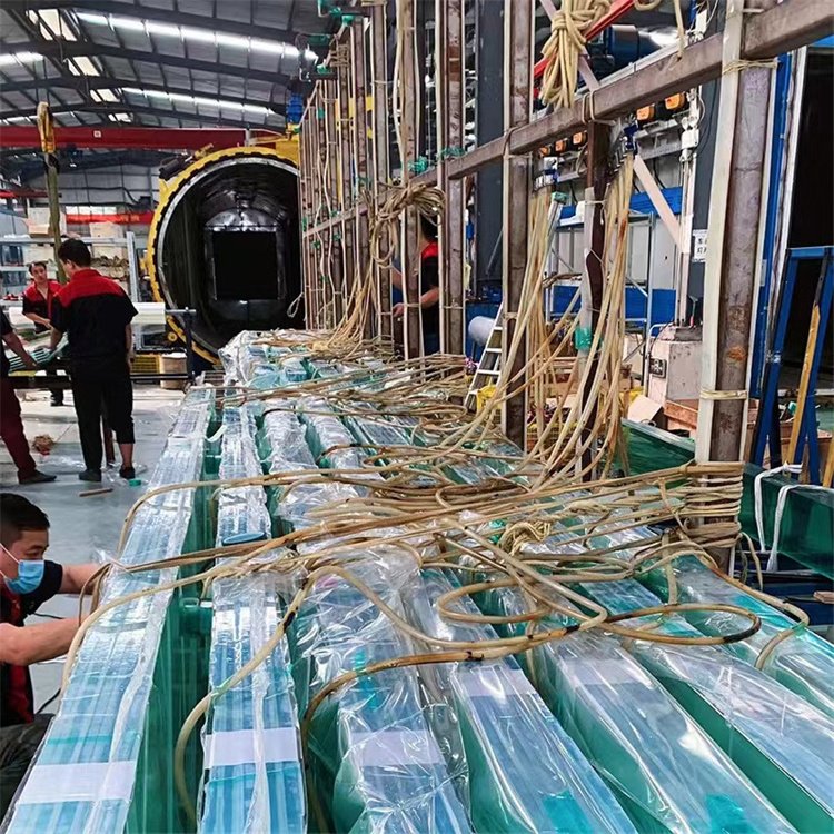 El vidrio laminado transparente está compuesto por dos o más piezas de vidrio transparente y película intermedia de polímero orgánico. La película intermedia se coloca entre dos o más piezas de vidrio, y después de un tratamiento de alta temperatura y alta presión, se adhiere a un todo para formar un vidrio laminado.