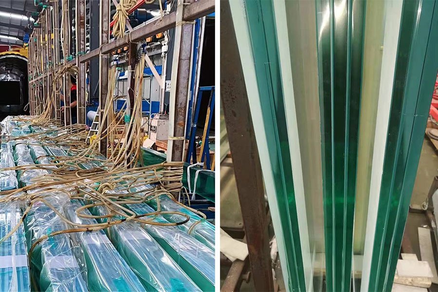 El vidrio de pasillo pertenece a una clase de vidrio laminado y generalmente consta de tres o más piezas de vidrio y película intermedia de polímero orgánico. La película intermedia se coloca entre cada dos cristales, y después de un tratamiento de alta temperatura y alta presión, se adhiere a un todo para formar un vidrio laminado.
